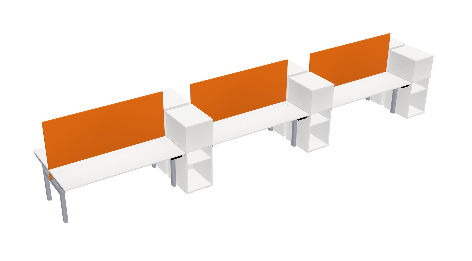 White Shared Dual Motor Electric Height Adjustable Desks With Side Cabinets For 6 Persons