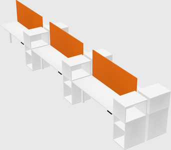 White Shared Dual Motor Electric Height Adjustable Desks With Side Cabinets For 6 Persons