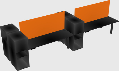Black Shared Dual Motor Electric Height Adjustable Desks With Side Cabinets For 4 Persons