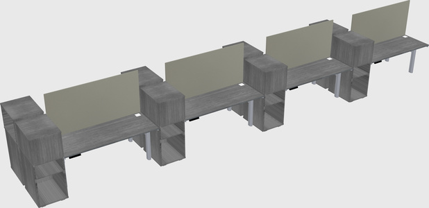 Grey Shared Dual Motor Electric Height Adjustable Desks With Side Cabinets For 8 Persons