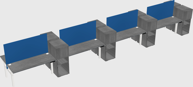 Grey Shared Dual Motor Electric Height Adjustable Desks With Side Cabinets For 8 Persons