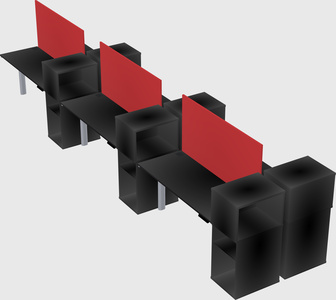 Black Shared Dual Motor Electric Height Adjustable Desks With Side Cabinets For 6 Persons