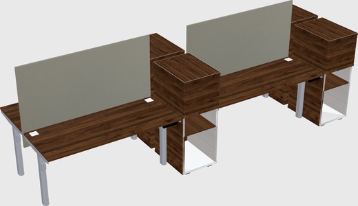 Columbia Walnut Shared Dual Motor Electric Height Adjustable Desks With Side Cabinets For 4 Persons
