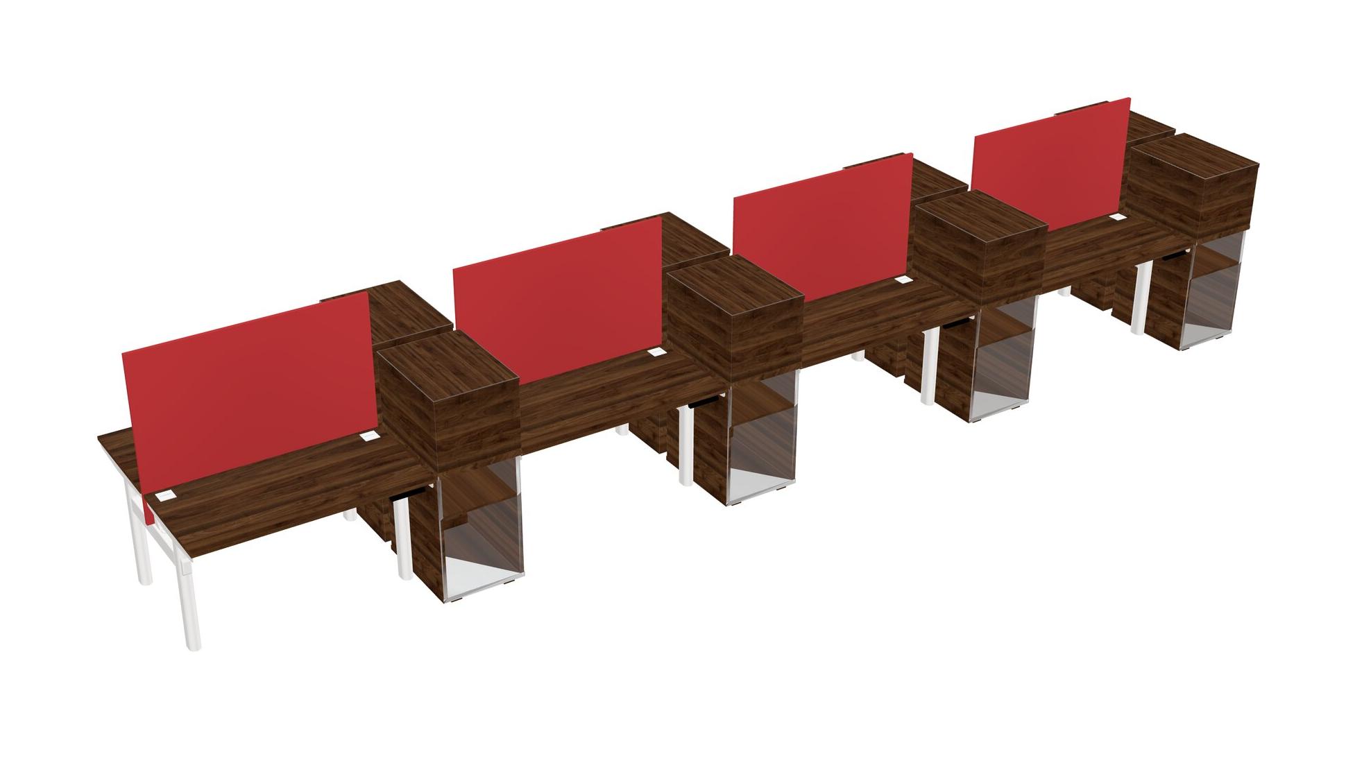 Columbia Walnut Shared Dual Motor Electric Height Adjustable Desks With Side Cabinets For 8 Persons