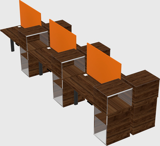 Columbia Walnut Shared Dual Motor Electric Height Adjustable Desks With Side Cabinets For 6 Persons