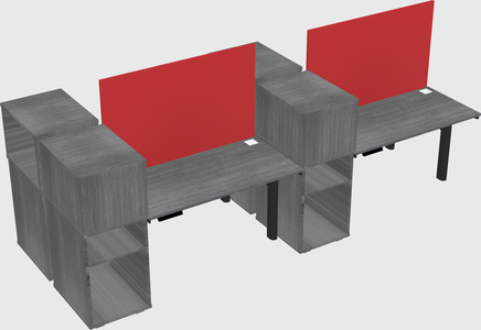 Grey Shared Dual Motor Electric Height Adjustable Desks With Side Cabinets For 4 Persons