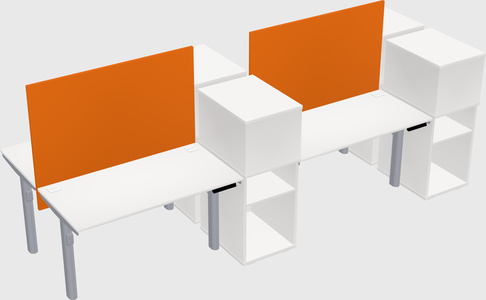 White Shared Dual Motor Electric Height Adjustable Desks With Side Cabinets For 4 Persons