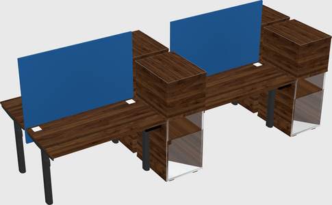 Columbia Walnut Shared Dual Motor Electric Height Adjustable Desks With Side Cabinets For 4 Persons