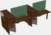 Columbia Walnut Shared Dual Motor Electric Height Adjustable Desks With Side Cabinets For 4 Persons