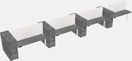 Grey Shared Dual Motor Electric Height Adjustable Desks With Side Cabinets For 8 Persons