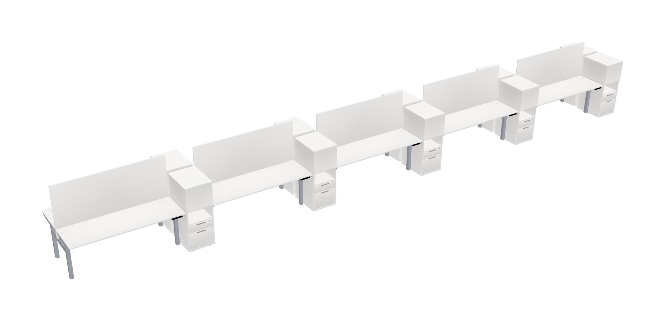 White Shared Dual Motor Electric Height Adjustable Desks With Side Cabinets For 10 Persons