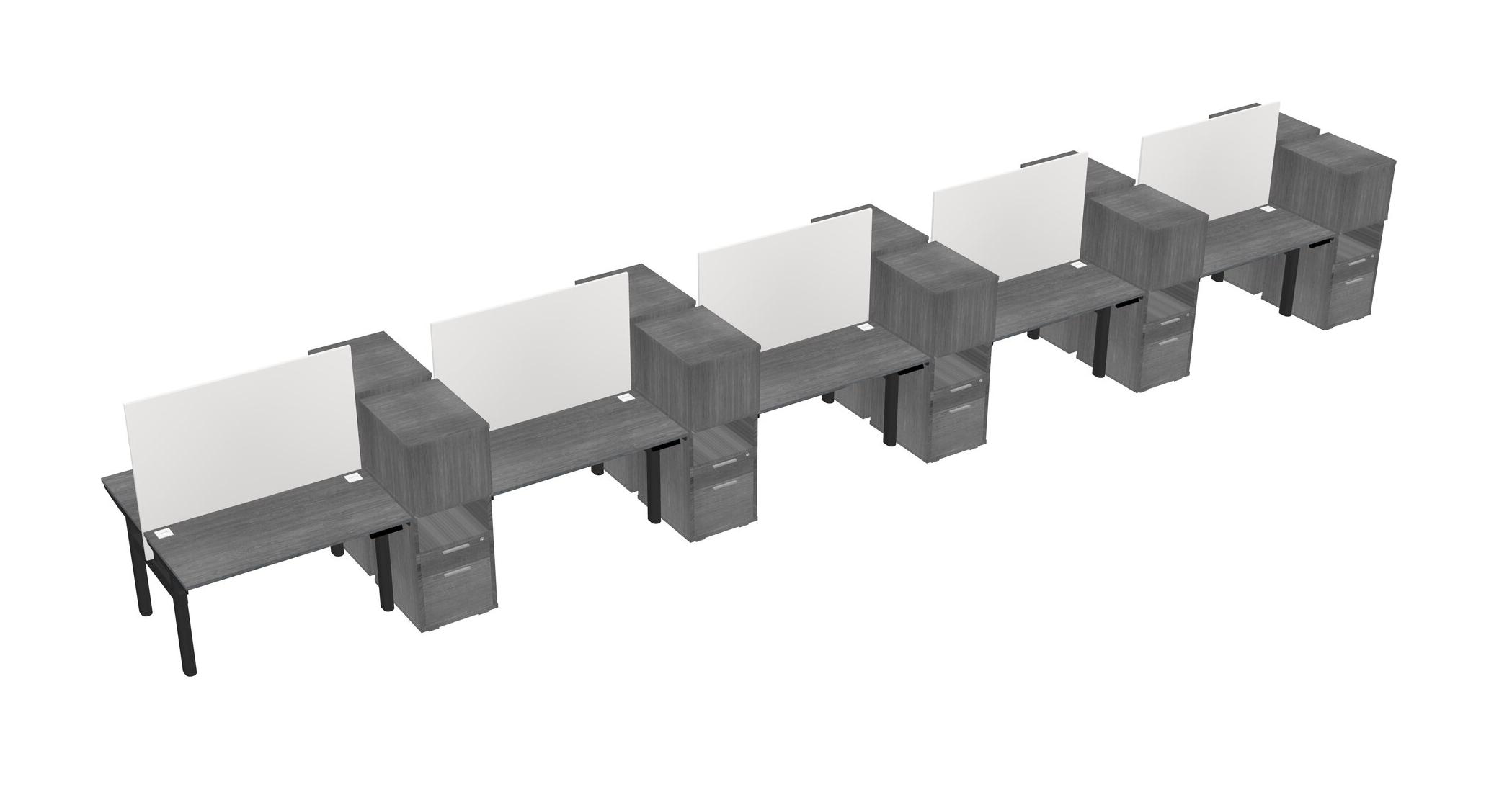 Grey Shared Dual Motor Electric Height Adjustable Desks With Side Cabinets For 10 Persons