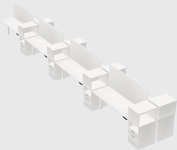 White Shared Dual Motor Electric Height Adjustable Desks With Side Cabinets For 8 Persons