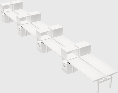White Shared Dual Motor Electric Height Adjustable Desks With Side Cabinets For 8 Persons