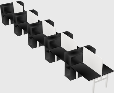 Black Shared Dual Motor Electric Height Adjustable Desks With Side Cabinets For 10 Persons