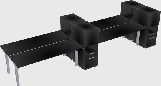 Black Shared Dual Motor Electric Height Adjustable Desks With Side Cabinets For 4 Persons
