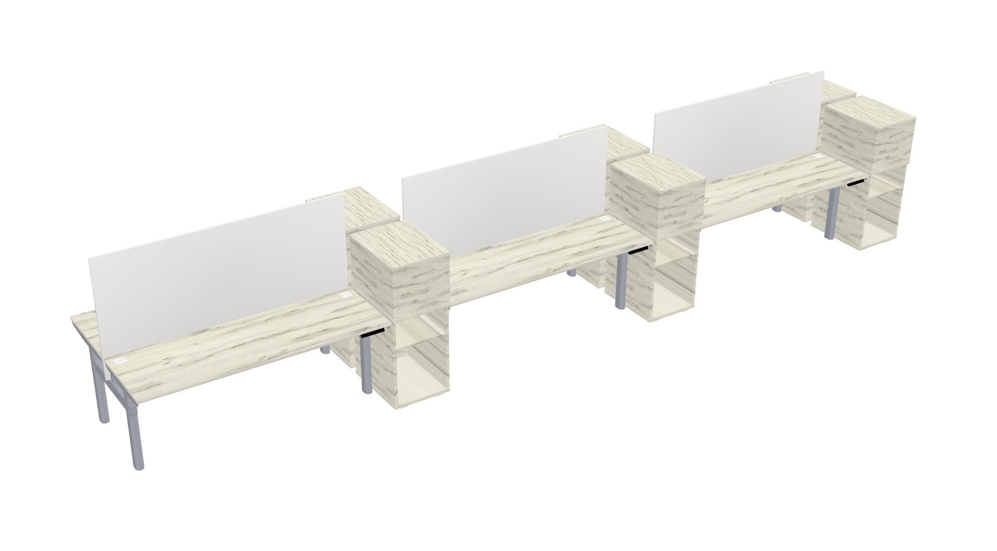 Heinne Holz Shared Dual Motor Electric Height Adjustable Desks With Side Cabinets For 6 Persons