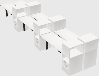 White Shared Dual Motor Electric Height Adjustable Desks With Side Cabinets For 6 Persons