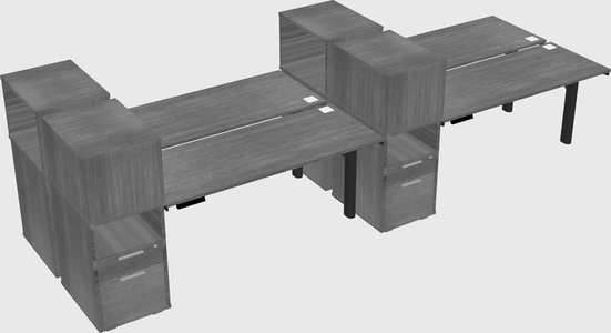 Grey Shared Dual Motor Electric Height Adjustable Desks With Side Cabinets For 4 Persons