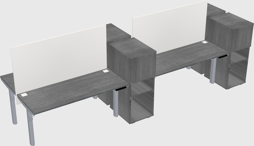 Grey Shared Dual Motor Electric Height Adjustable Desks With Side Cabinets For 4 Persons