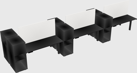 Black Shared Dual Motor Electric Height Adjustable Desks With Side Cabinets For 6 Persons