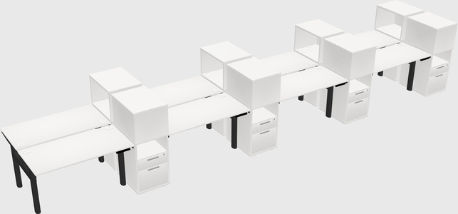 White Shared Dual Motor Electric Height Adjustable Desks With Side Cabinets For 8 Persons