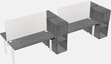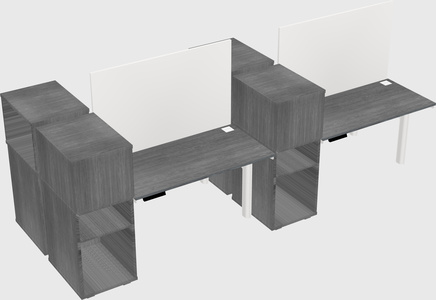 Grey Shared Dual Motor Electric Height Adjustable Desks With Side Cabinets For 4 Persons
