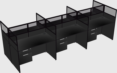 Black Shared Dual Motor Electric Height Adjustable Desks With Side Cabinets For 6 Persons