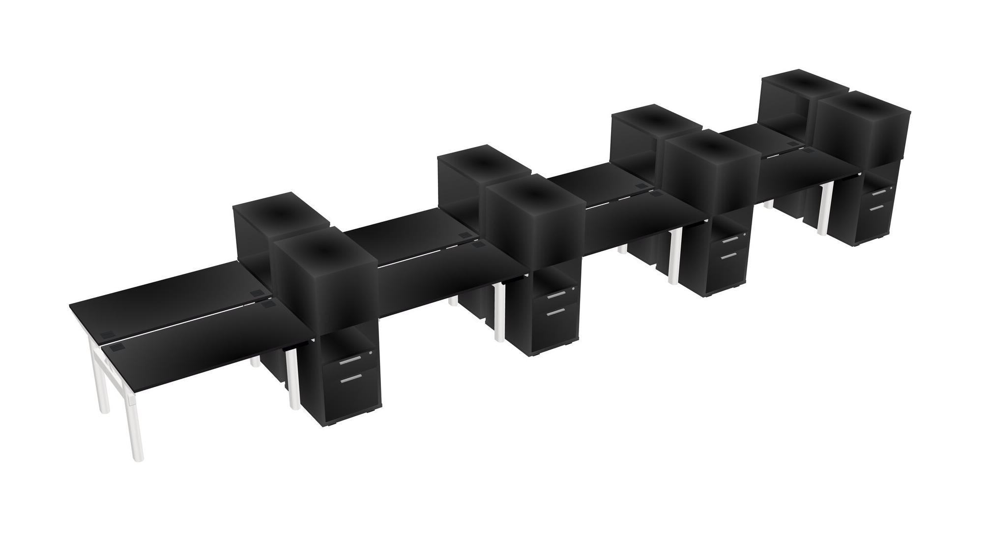 Black Shared Dual Motor Electric Height Adjustable Desks With Side Cabinets For 8 Persons