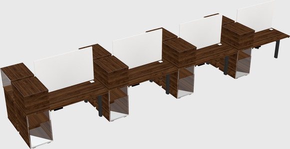 Columbia Walnut Shared Dual Motor Electric Height Adjustable Desks With Side Cabinets For 8 Persons