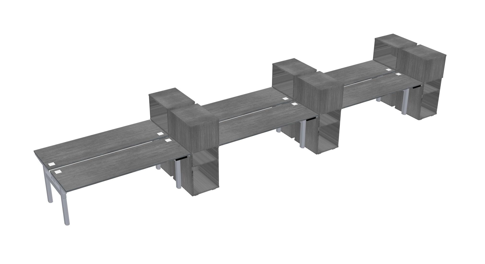 Grey Shared Dual Motor Electric Height Adjustable Desks With Side Cabinets For 6 Persons