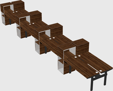 Columbia Walnut Shared Dual Motor Electric Height Adjustable Desks With Side Cabinets For 8 Persons