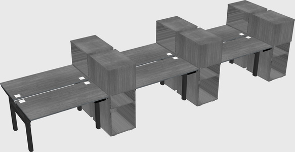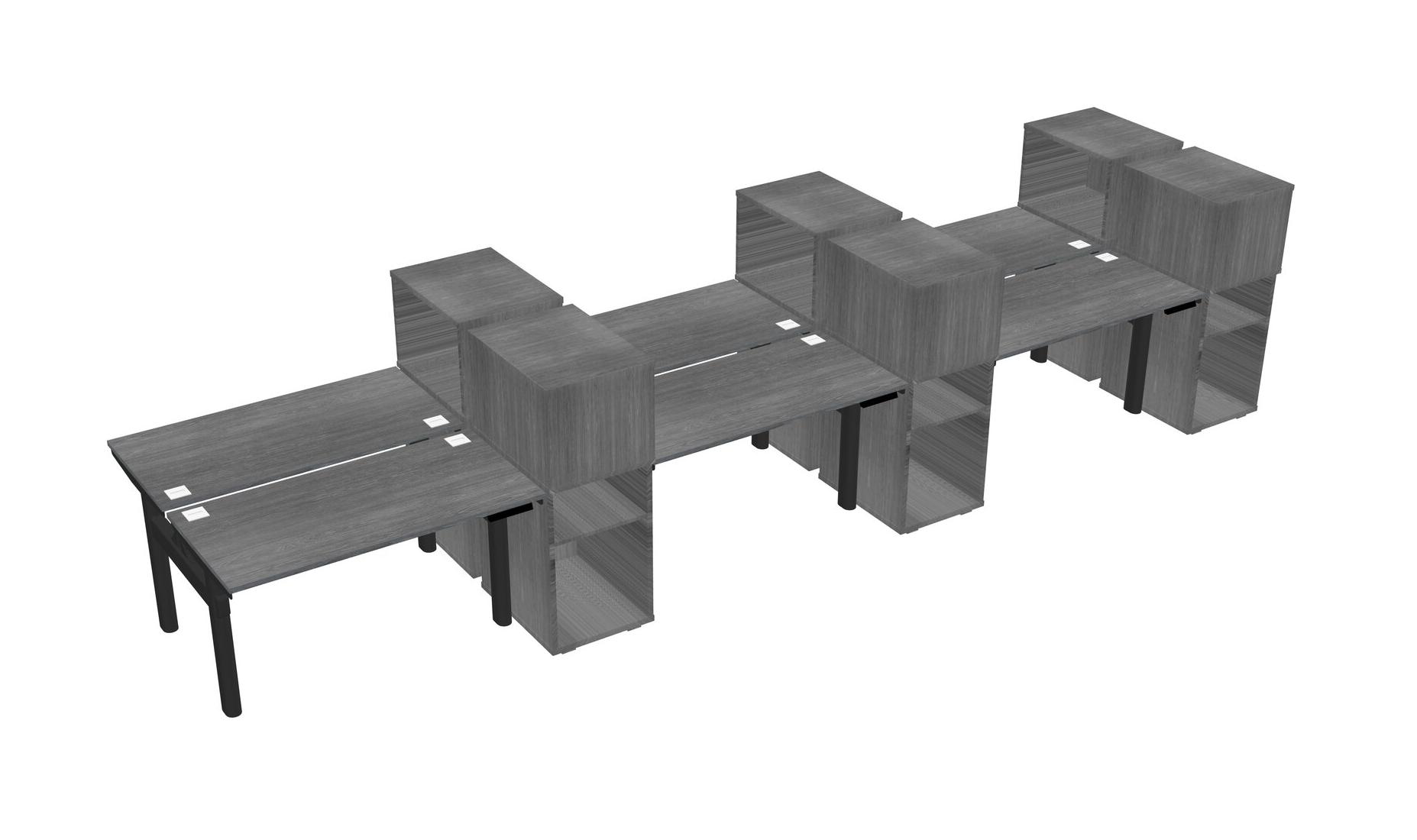 Grey Shared Dual Motor Electric Height Adjustable Desks With Side Cabinets For 6 Persons