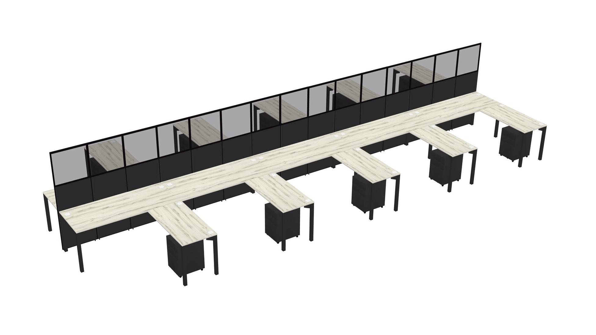 Heinne Holz Shared L-shape Office Cubicle Panel System For 10 Persons