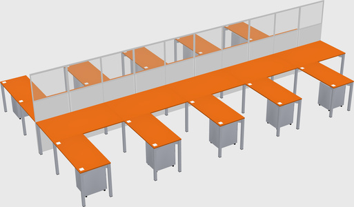 Orange Shared L-shape Office Cubicle Panel System For 10 Persons