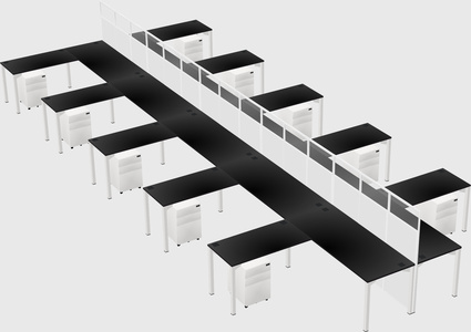 Black Shared L-shape Office Cubicle Panel System For 10 Persons