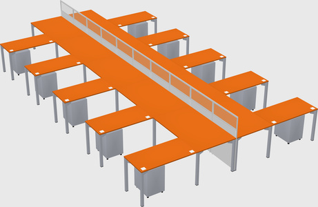 Orange Shared L-shape Office Cubicle Panel System For 10 Persons