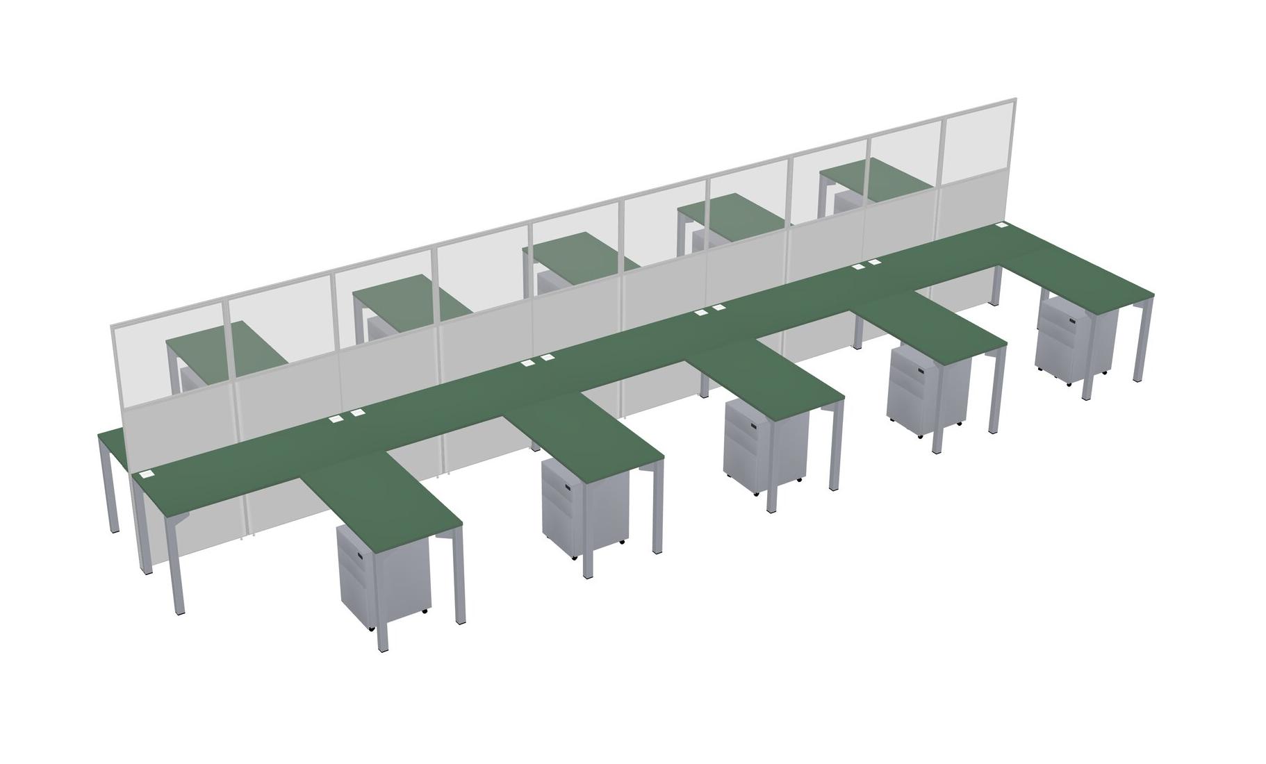 Green Shared L-shape Office Cubicle Panel System For 10 Persons