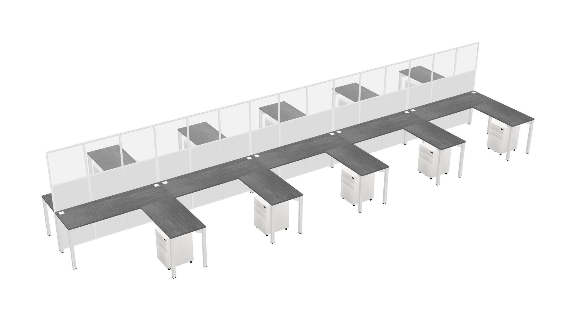 Grey Shared L-shape Office Cubicle Panel System For 10 Persons