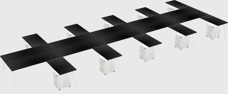 Black Shared L-shape Office Cubicle Panel System For 10 Persons
