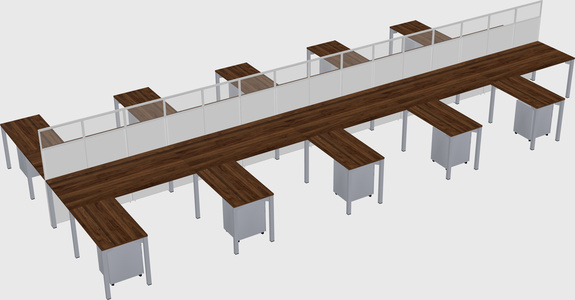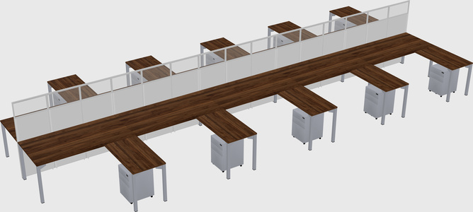 Columbia Walnut Shared L-shape Office Cubicle Panel System For 10 Persons