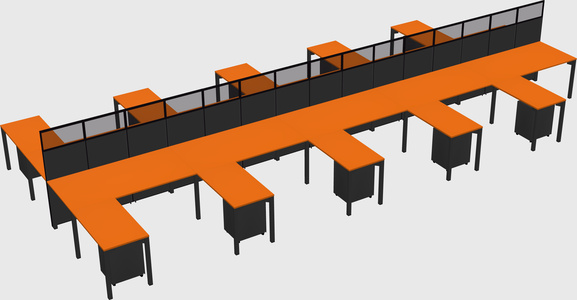 Orange Shared L-shape Office Cubicle Panel System For 10 Persons