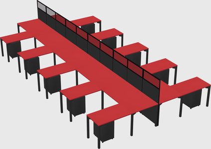 Prism Red Shared L-shape Office Cubicle Panel System For 10 Persons
