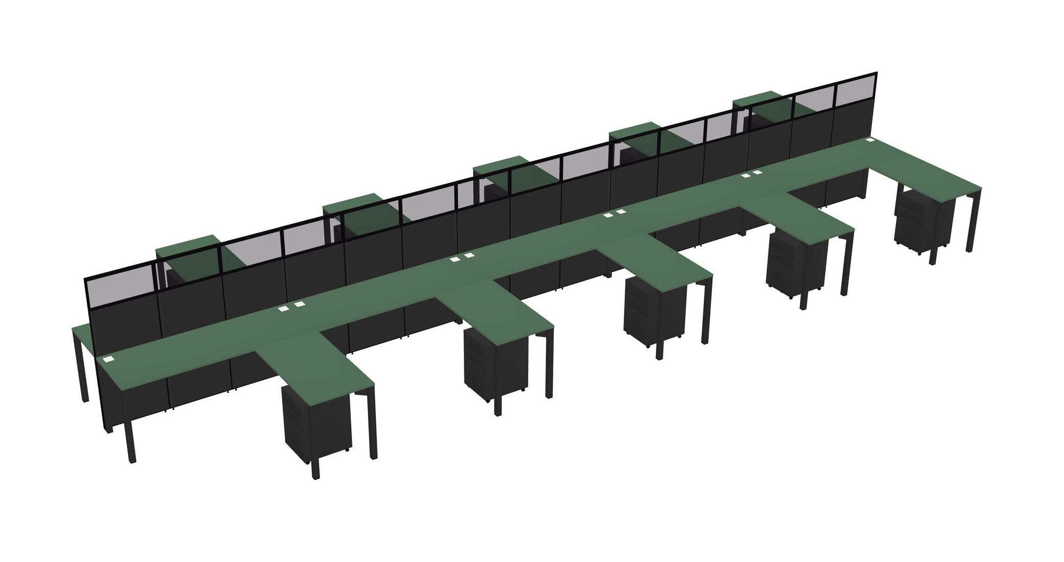 Green Shared L-shape Office Cubicle Panel System For 10 Persons