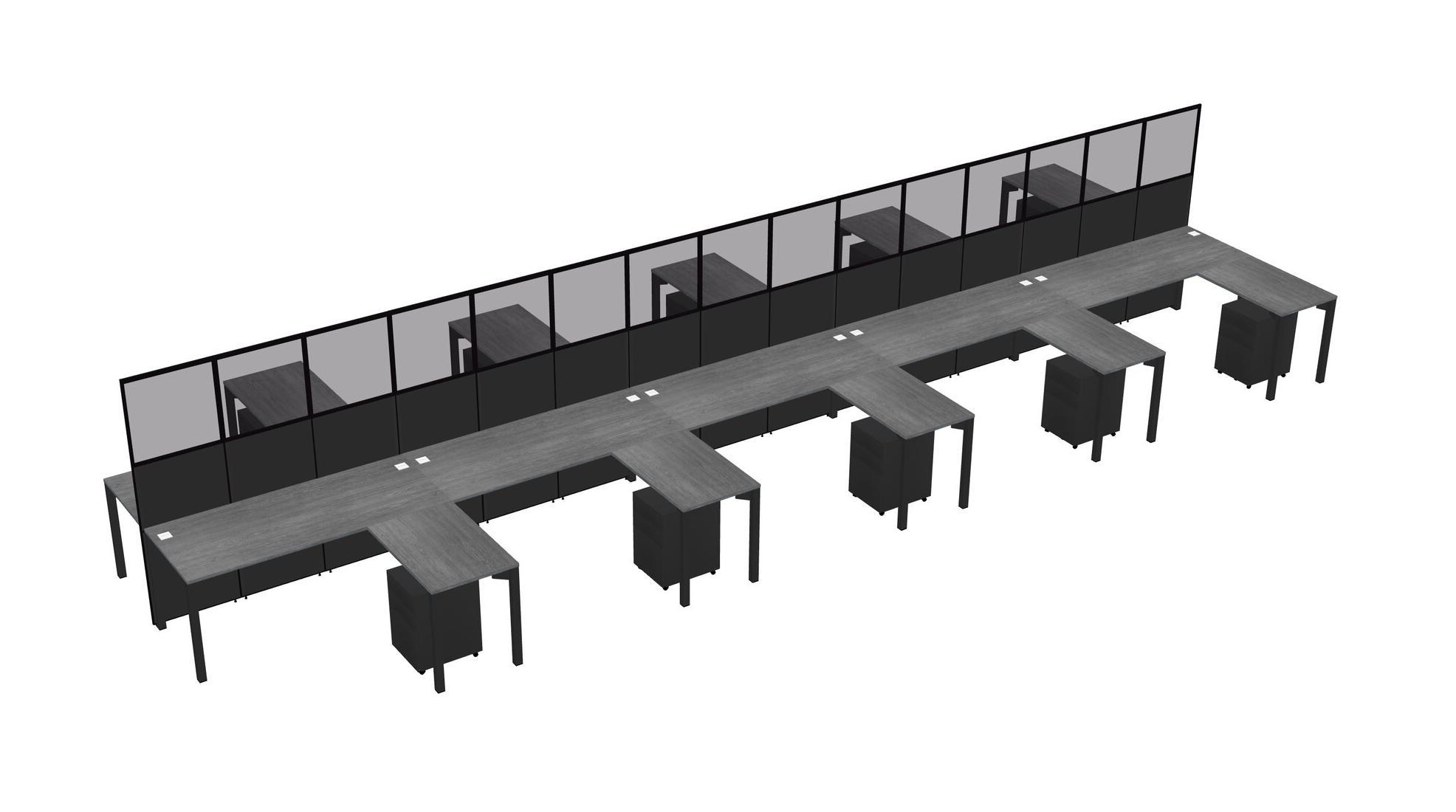 Grey Shared L-shape Office Cubicle Panel System For 10 Persons