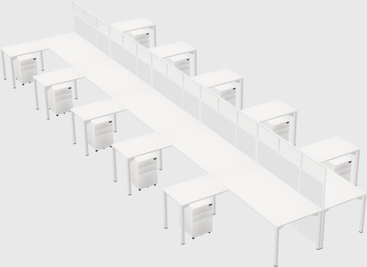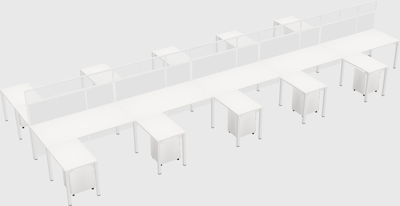 White Shared L-shape Office Cubicle Panel System For 10 Persons