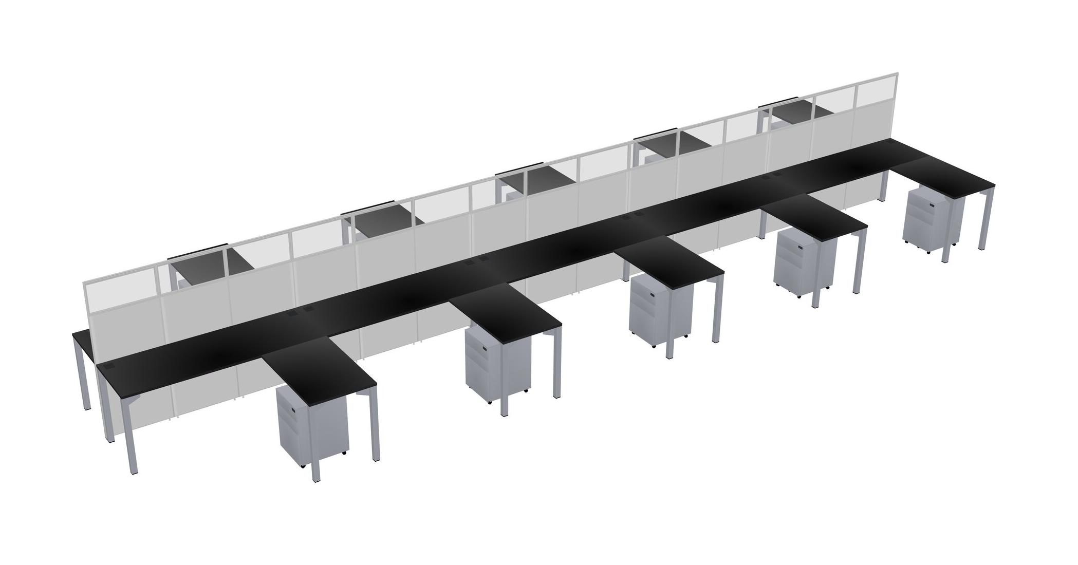 Black Shared L-shape Office Cubicle Panel System For 10 Persons
