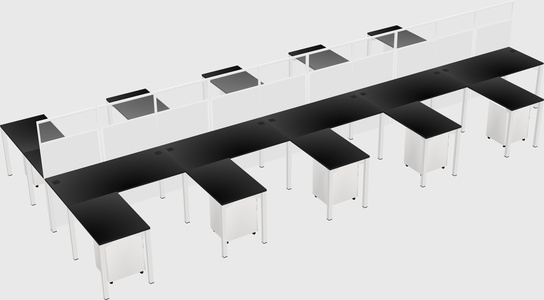 Black Shared L-shape Office Cubicle Panel System For 10 Persons
