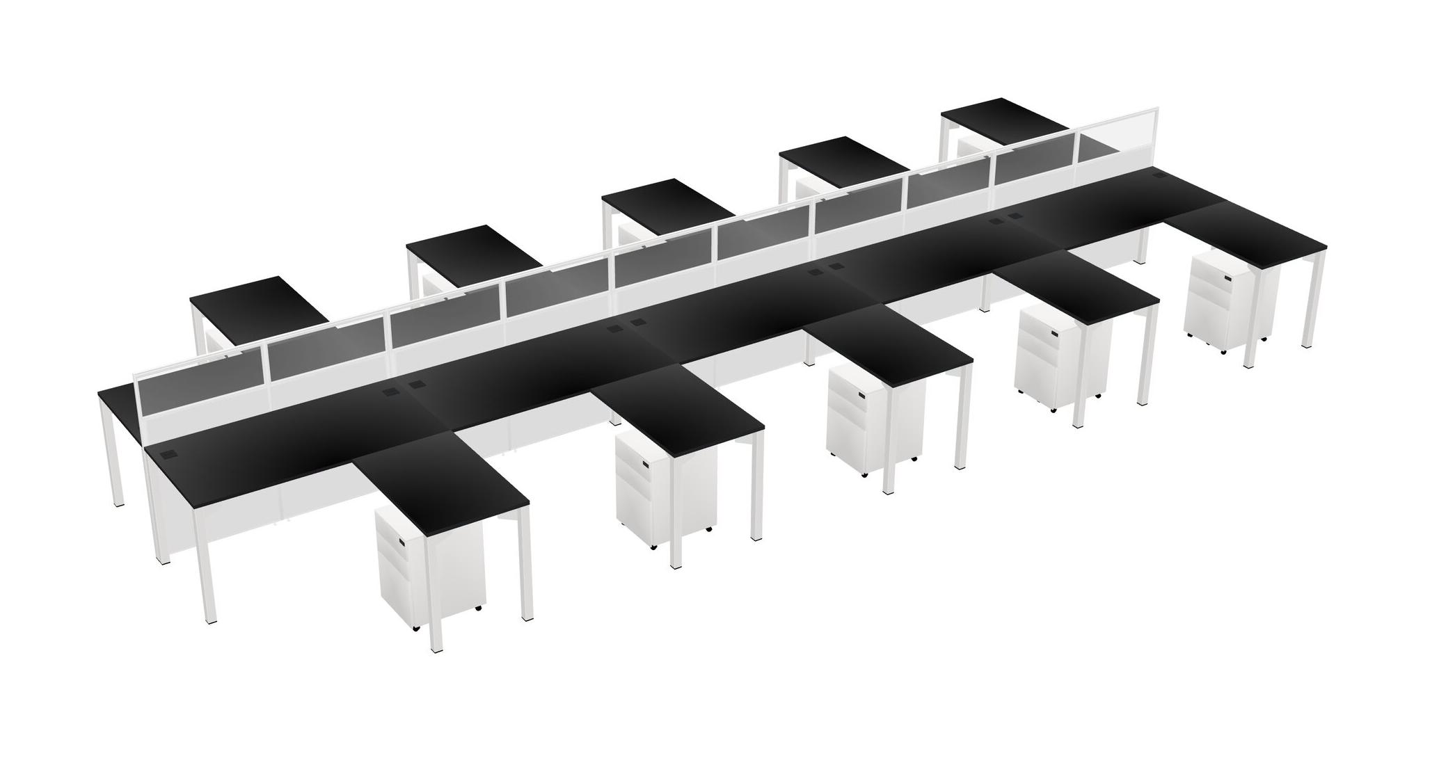 Black Shared L-shape Office Cubicle Panel System For 10 Persons