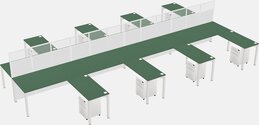 White Shared L-shape Office Cubicle Panel System For 8 Persons